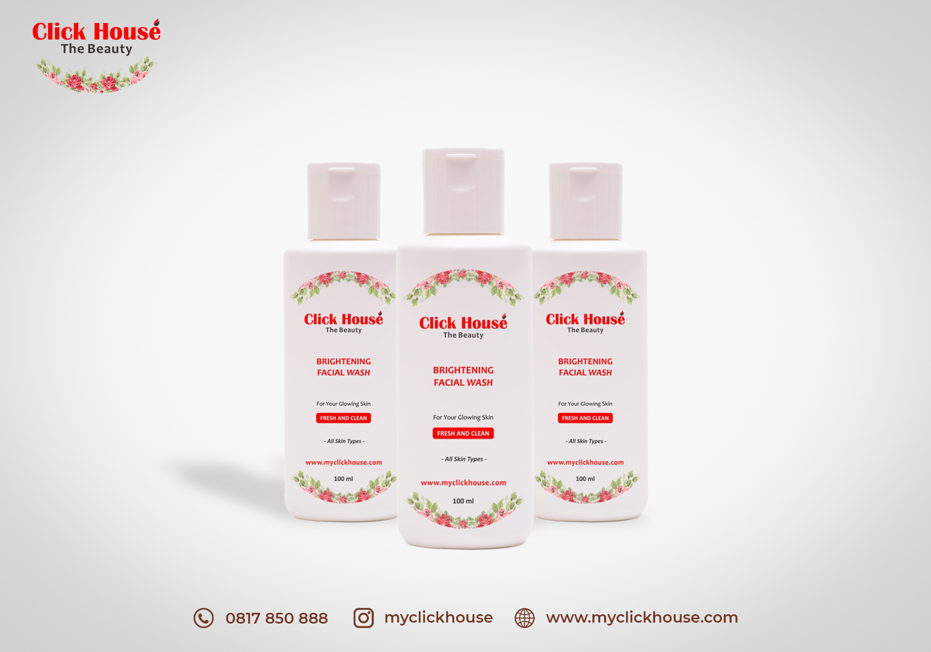 Brightening Facial Wash, salah satu skincare Click House mampu membersihkan wajah dengan seksama dari kotoran, minyak berlebih hingga make-up yang masih menempel hingga kandungan glycolic acid yang dapat membantu mencerahkan wajah dengan mengangkat sel kulit mati pada wajah, sehingga wajah tampak lebih halus, bebas kusam dan bersih bersinar.
