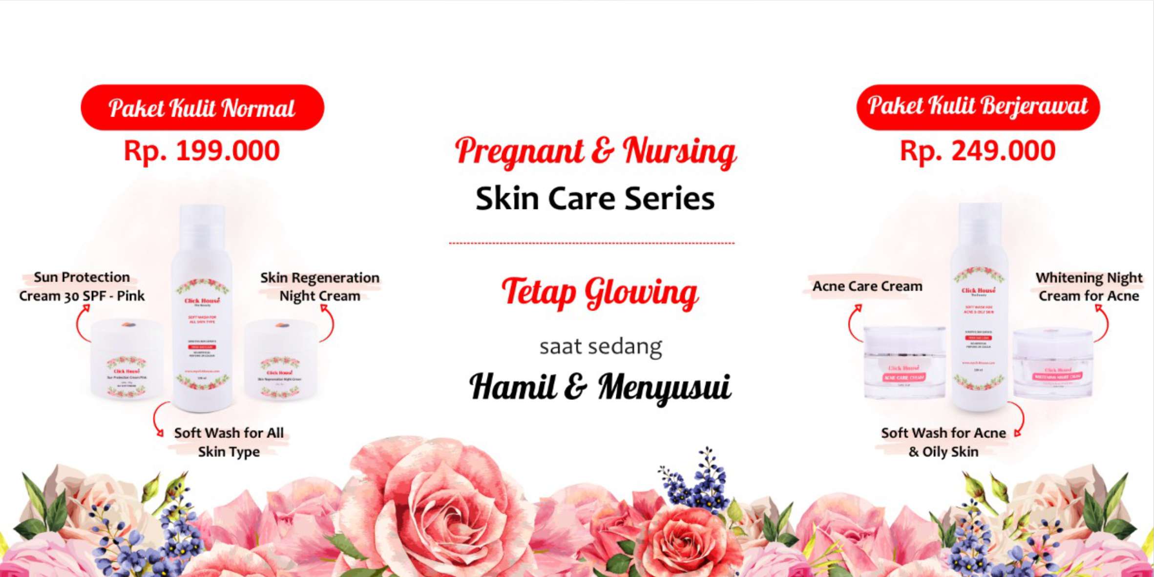 2 jenis pilihan paket sesuai dengan jenis kulit, yaitu normal dan berjerawat