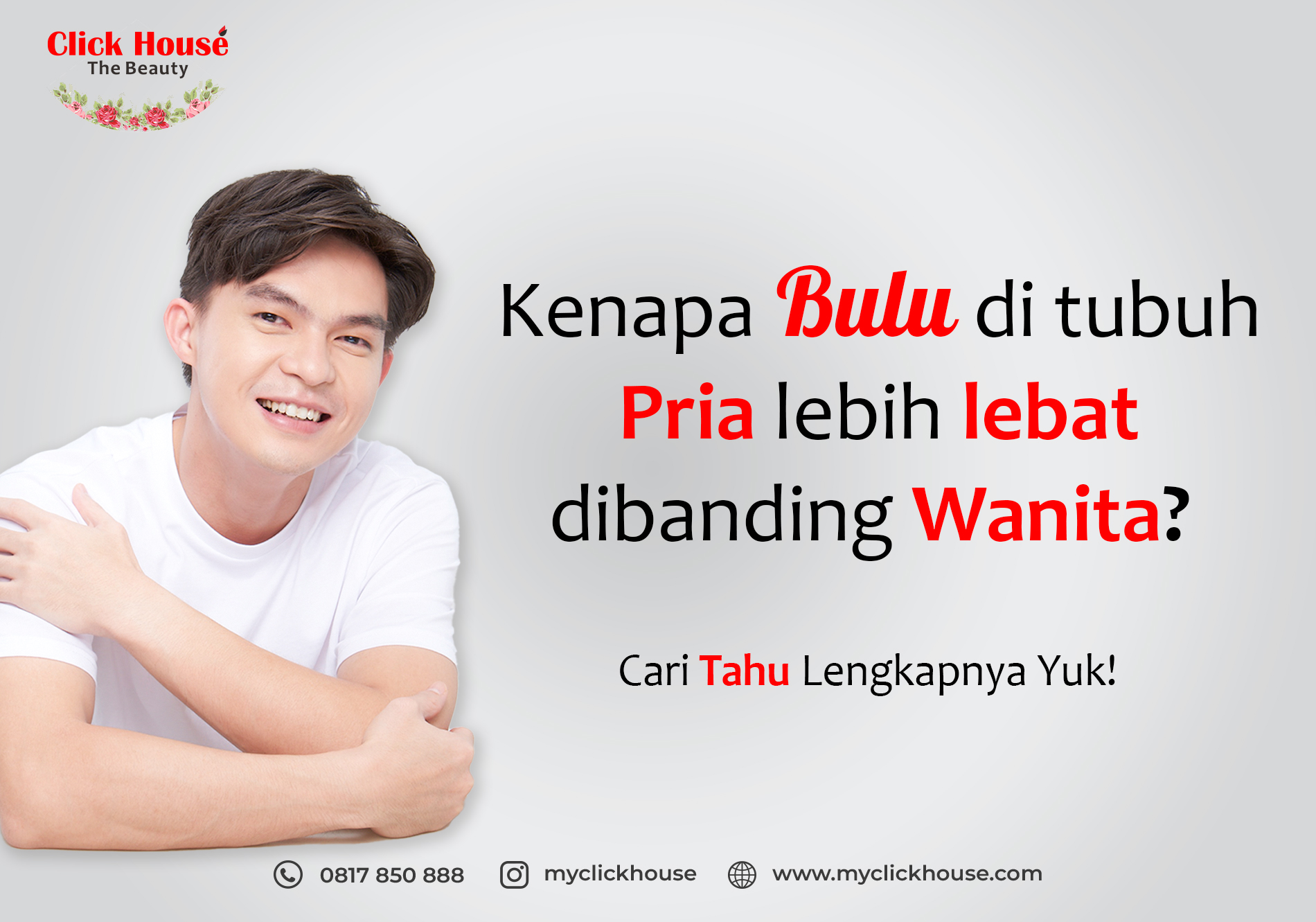 Nah sekarang sudah tahu kan Clickmates mengapa bulu di tubuh pria lebih lebat dibanding wanita beserta fakta-faktanya. Namun ternyata tidak semua pria menyukai hal itu, sebagian pria menginginkan kulit yang halus tanpa bulu, apakah Clickmates termasuk tipikal pria tersebut? Kini tak perlu khawatir lagi, Click House bisa mewujudkan hal itu dengan merekomendasikan treatment yang menjadi salah satu Best Seller di Click House, yaitu rutin melakukan Permanent Hair Away.