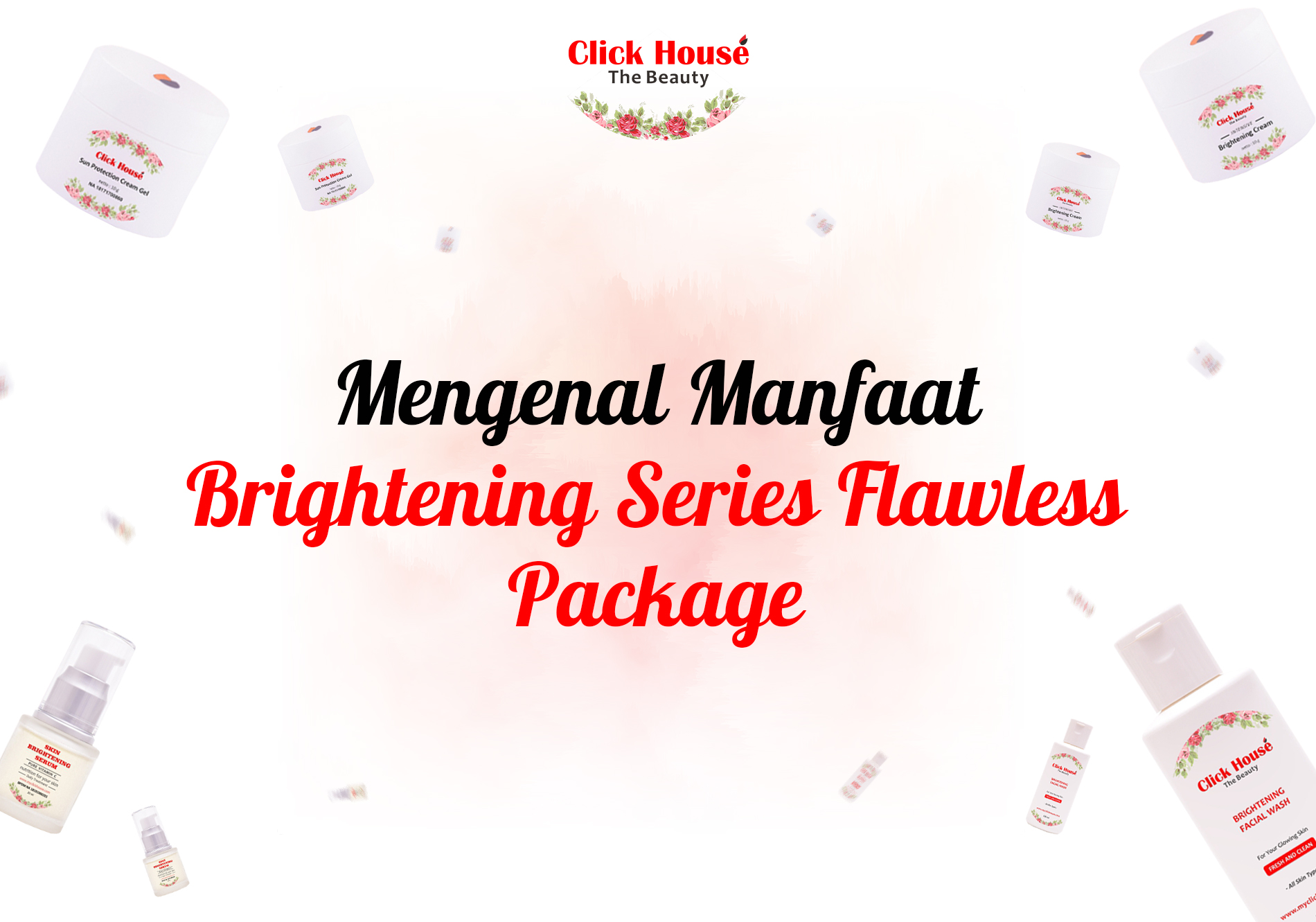 Brightening Series Flawless Package merupakan rangkaian produk skin care dari Click House yang hadir sebagai solusi dalam mengatasi masalah tersebut dan terbukti ampuh mengatasi kulit kusam, noda flek dan bekas jerawat pada wajah. Rangkaian series ini terdiri dari Brightening Facial Wash, Intensive Brightening Cream, Brightening Serum, serta dilengkapi dengan Sun Protection Cream Pink/Gel untuk melindungi kulit Clickmates dari efek buruk sinar matahari.