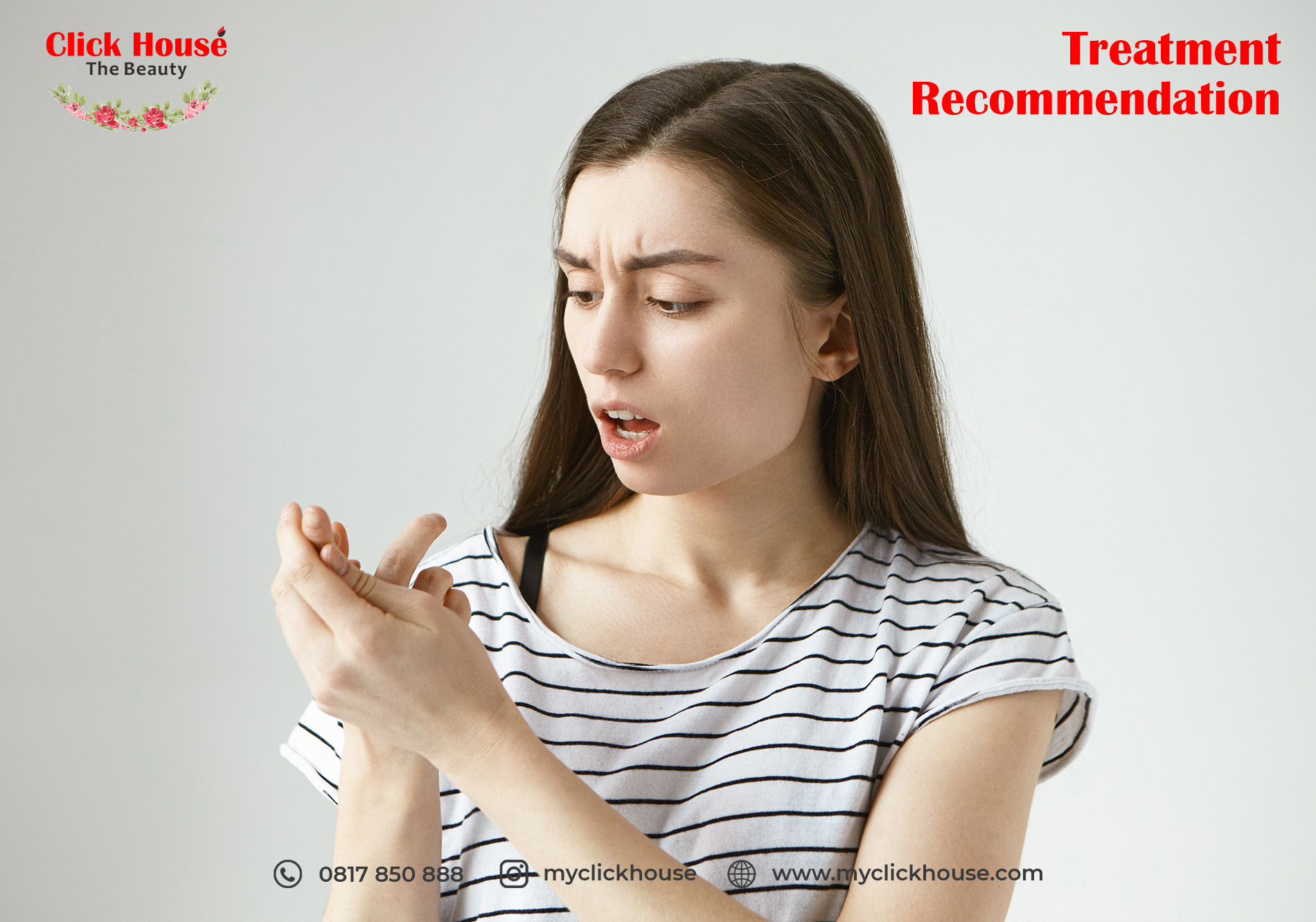 Penasaran dengan treatment nya? Segera lakukan reservasi secara online melalui call center kami di 0817 850 888 dan bisa berkonultasi secara GRATIS bersama Dokter terbaik kami. Atau silahkan datang langsung ke outlet Click House terdekat di Melawai, Rawamangun, Tebet, Bandung, Bintaro, Gading Serpong, dan Pantai Indah Kapuk.