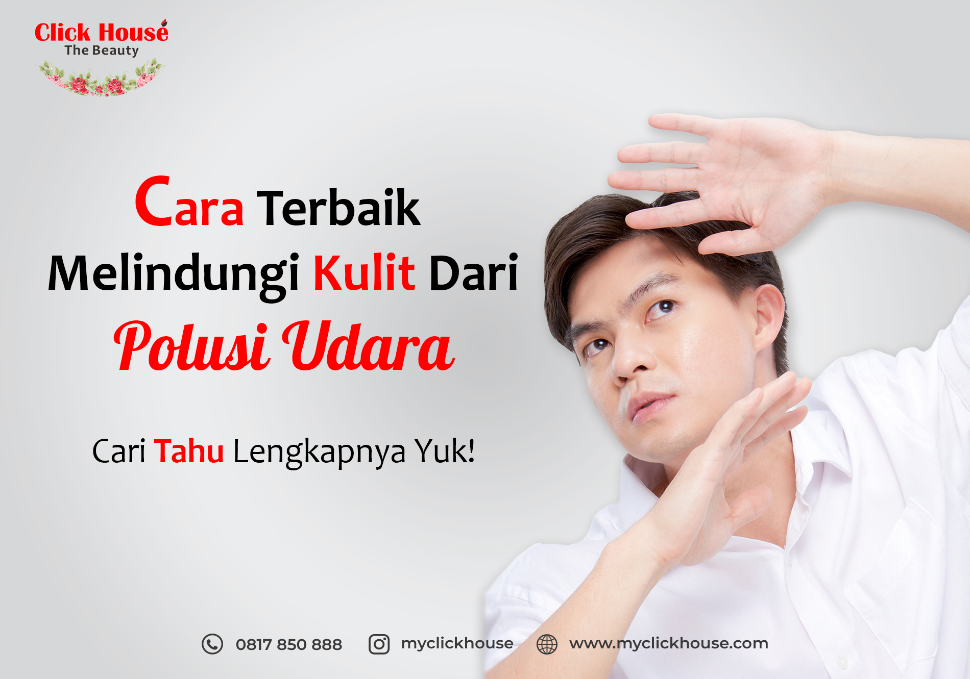 Kulit merupakan bagian tubuh paling luar yang sudah sewajarnya perlu kita jaga. Selain dari radiasi sinar matahari, polusi udara merupakan hal yang menjadi musuh besar bagi kulit yang sehat dan cantik. Polusi udara dapat membuat kulit berjerawat, terlihat kusam, munculnya garis halus pada wajah, hingga dapat menjadi penyebab munculnya flek hitam. Maka dari itu, merawat dan melindungi kulit merupakan cara terbaik untuk mengantisipasi dampak buruk dari polusi udara. Nah, berikut cara terbaik dalam melindungi kulit dari polusi udara. Selamat mencobanya Clickmates!