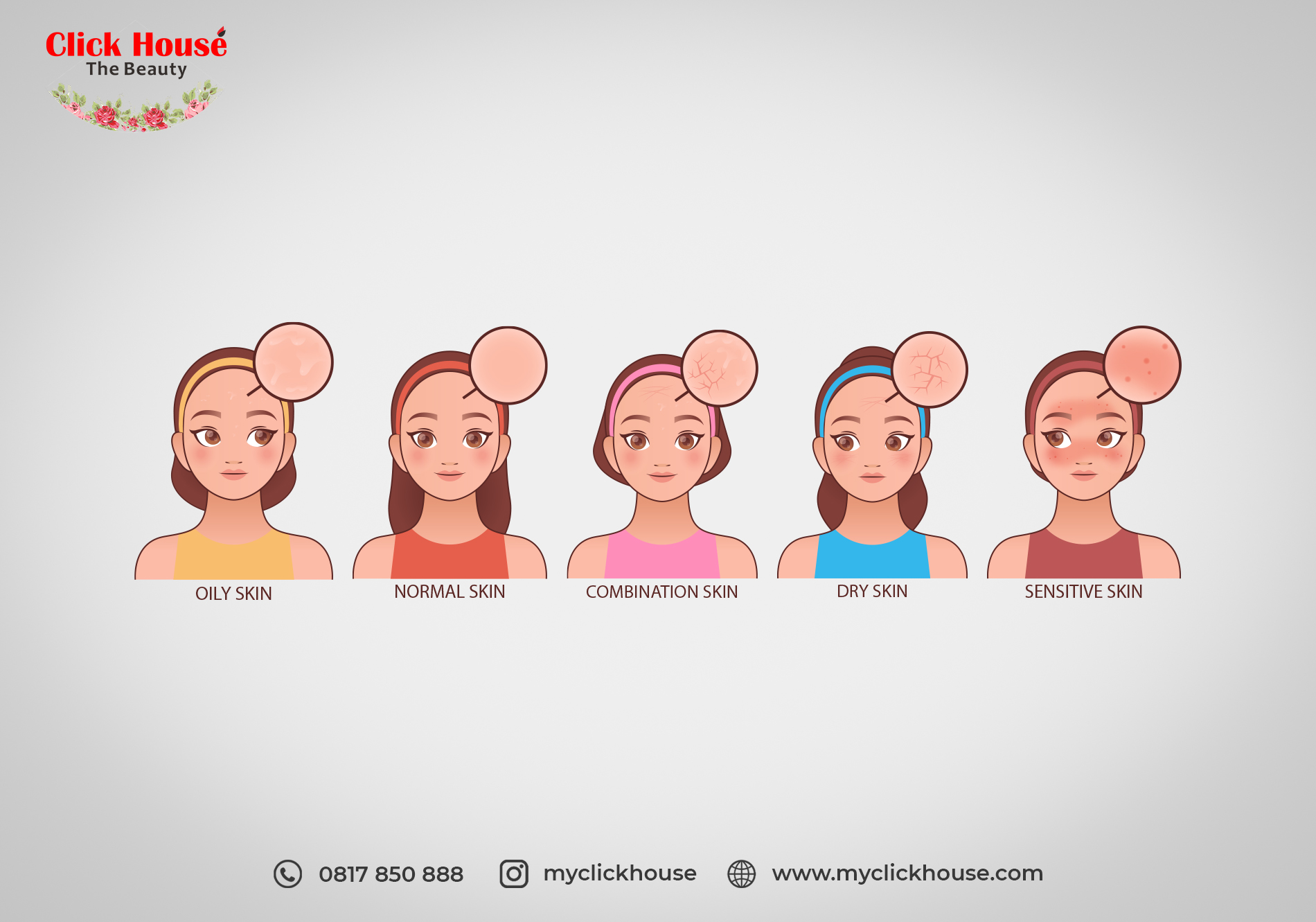 Secara umum jenis kulit terbagi menjadi 5 yaitu kulit normal, kulit kering, kulit berminyak, kulit kombinasi dan kulit sensitif. Selain itu penting juga untuk diingat bahwa jenis kulit dapat berubah seiring bertambahnya usia. Faktor yang menentukan biasanya terjadi karena faktor genetik, hingga faktor eksternal seperti paparan radikal bebas, iklim, sinar matahari hingga faktor gaya hidup.