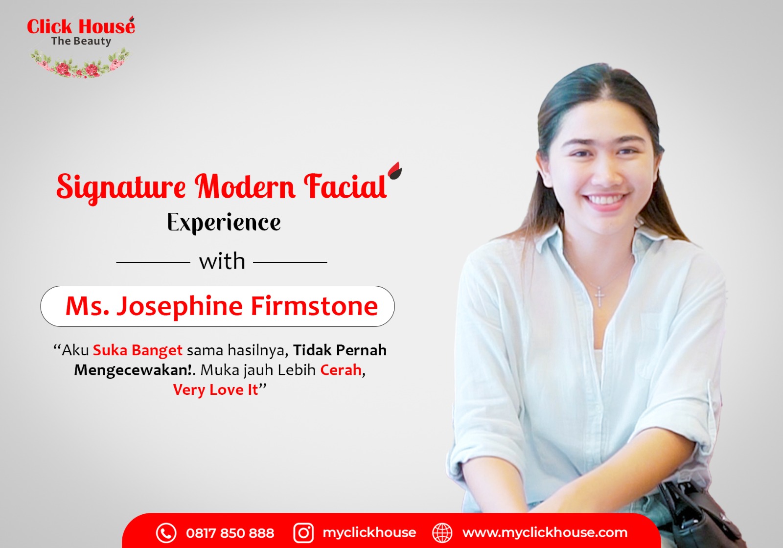 “Hai Clickmates! Hari ini aku baru saja selesai treatment favorit aku di Click House yaitu Signature Modern Facial dan Instant Skin Rejuvenation. Seperti biasa, treatmentnya tidak pernah mengecewakan. Aku suka banget dengan hasilnya, wajah langsung merasa jadi jauh lebih cerah” – ucap Ms. Josephine Firmstone