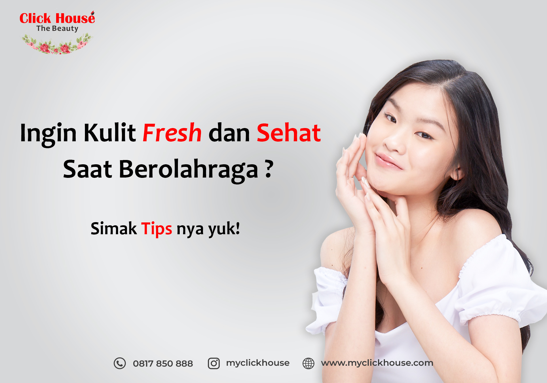 Berolahraga merupakan salah satu aktivitas yang dapat memberikan banyak manfaat kesehatan, salah satu manfaatnya adalah dapat meningkatkan daya tahan tubuh. Namun disaat kita sedang berolahraga, kulit kita akan mudah terkena kotoran dan debu yang menyatu dengan keringat yang tak disadari dapat membuat kulit kita menjadi kusam. Nah, agar Clickmates tetap terlihat fresh dan sehat saat berolahraga, Clickmates dapat mengikuti tips minima berikut inil Yuk disimak!