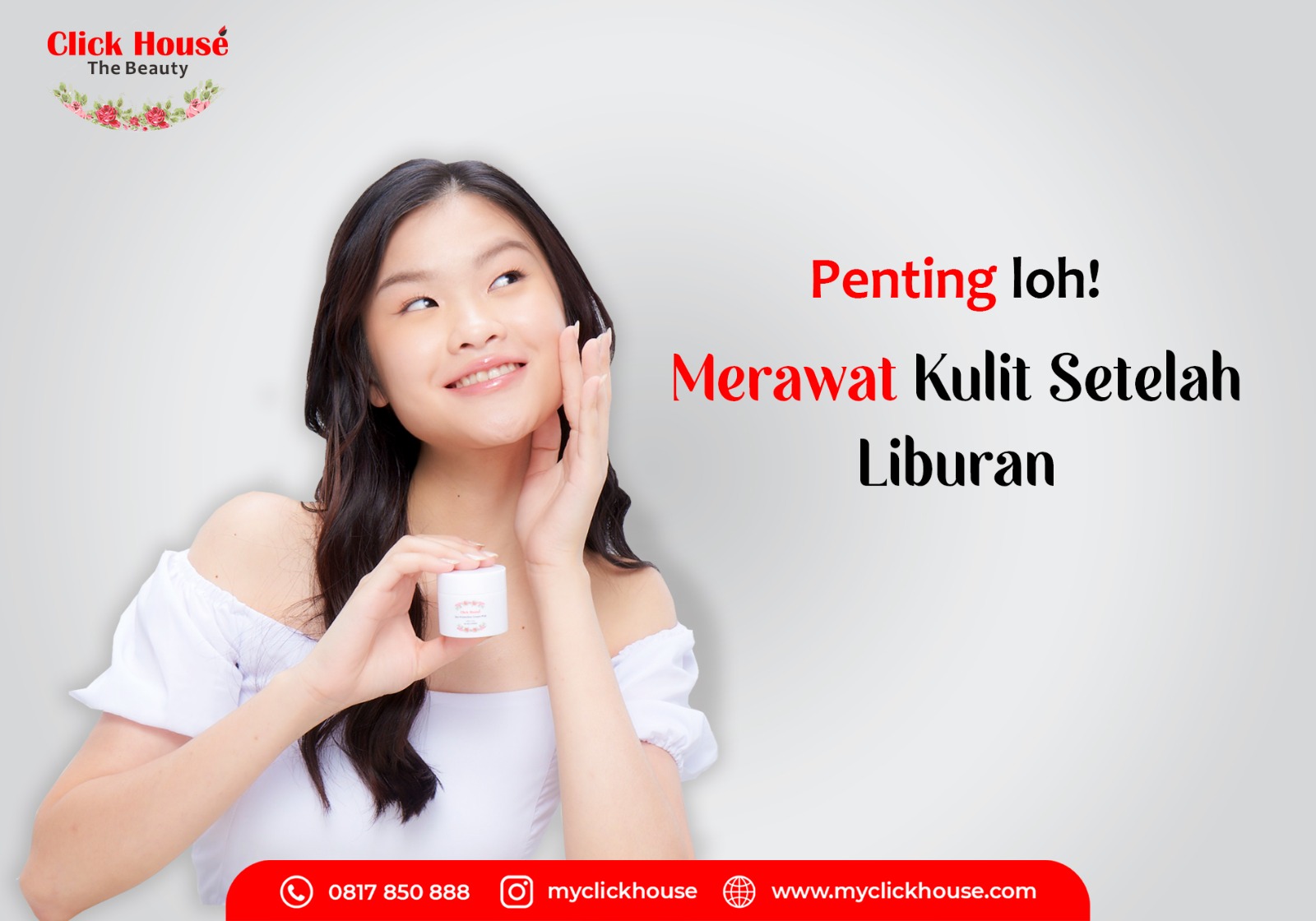 Liburan merupakan salah satu resolusi yang wajib banget ada di list setiap tahunnya. Namun setelah berlibur, tak sedikit dari kita sering melupakan perawatan kulit. Padahal, perlu Clickmates ketahui jika kulit ternyata belum kembali normal seperti biasanya, apalagi saat berlibur kulit lebih banyak terpapar sinar matahari, terkena debu hingga kotoran yang menempel. Makanya, penting banget skincare routine setelah liburan. Clickmates dapat melakukan perawatan yang simple seperti berikut ini. Ini dia beberapa rutinitas skincare yang bisa Clickmates lakukan.